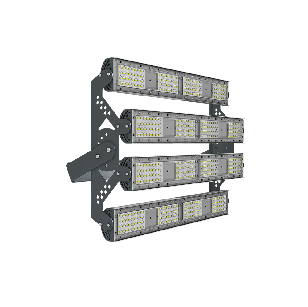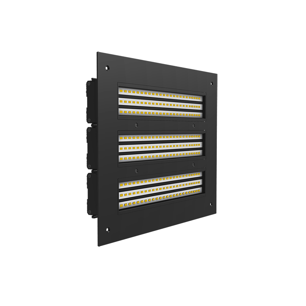 Professional industrial modular floodlight with anti-vibration mounting. IP65/IP66, IK10.