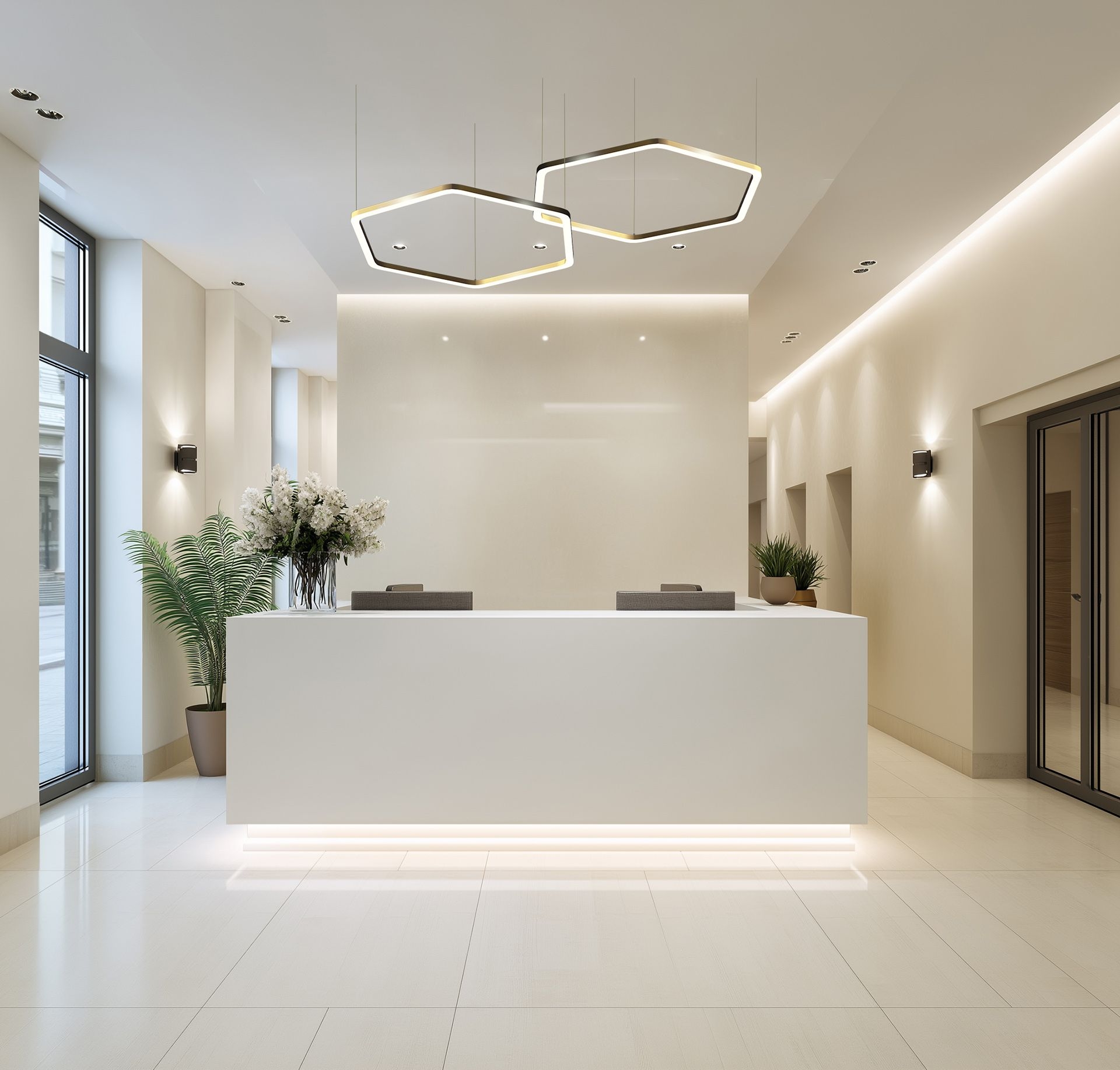 ARES is a decorative lighting solution designed to define and enhance contemporary interiors. This special designed luminaire with refined geometric form and clean lines, deliver a strong architectural presence, while integrated LED technology ensures uniform, comfortable illumination. Combining aesthetics with performance, ARES is a statement fixture that elevates professional and commercial spaces. ARES is ideal for creating an ambiance with a distinctive character, suited for exclusive residential spaces, hotel lobbies, commercial areas, retail premises, business venues, standing out from the average market offer and design with its clean hexagonal shape and soft rounded edges.