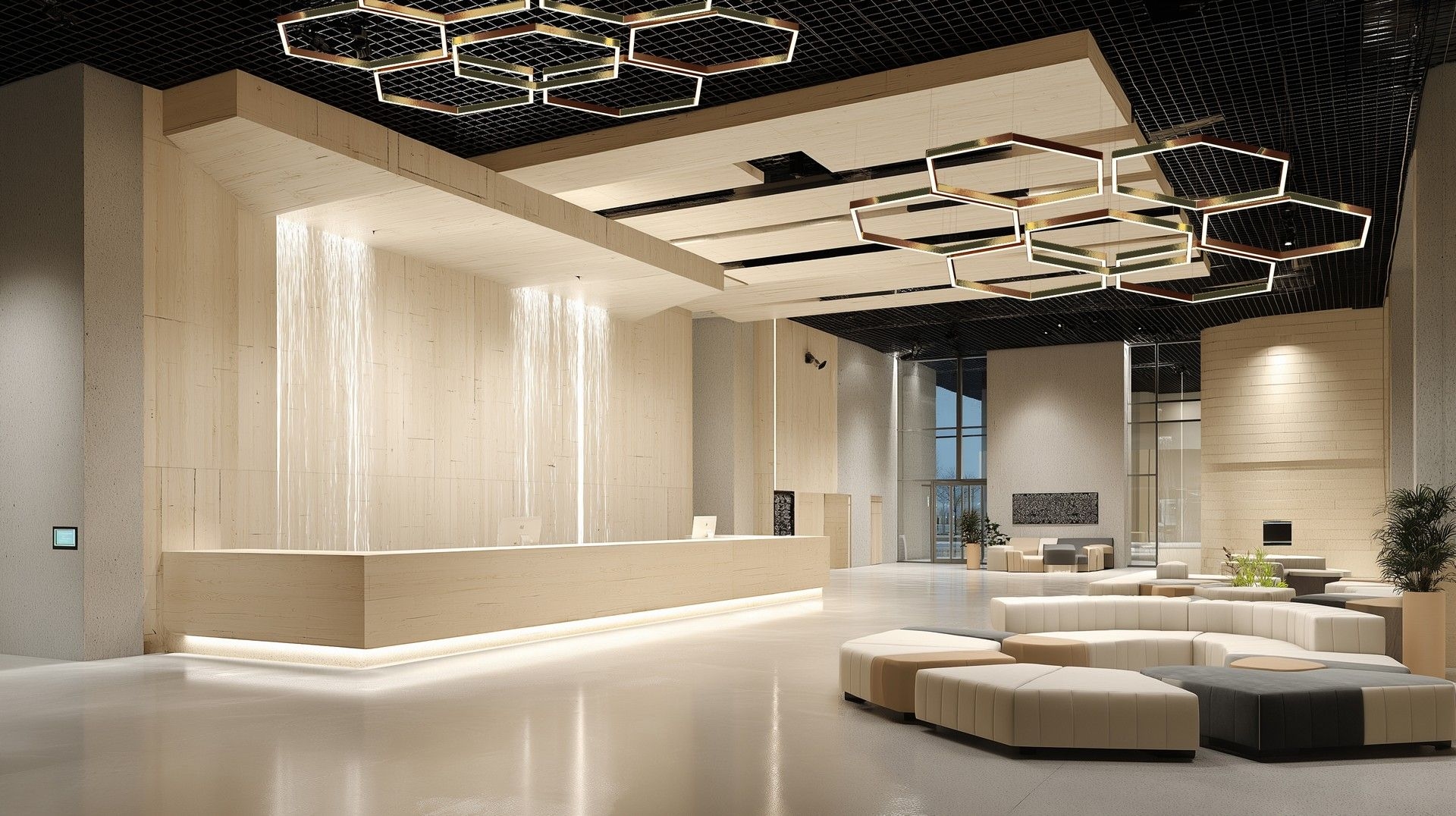 ARTEMIDA can be mounted on any surface, regardless of ceiling type, using mounting components and cables. Its unique hexagonal honeycomb design draws attention, adds creativity, and injects dynamism into the space, especially when combined with multiple fixtures of the same or different sizes.