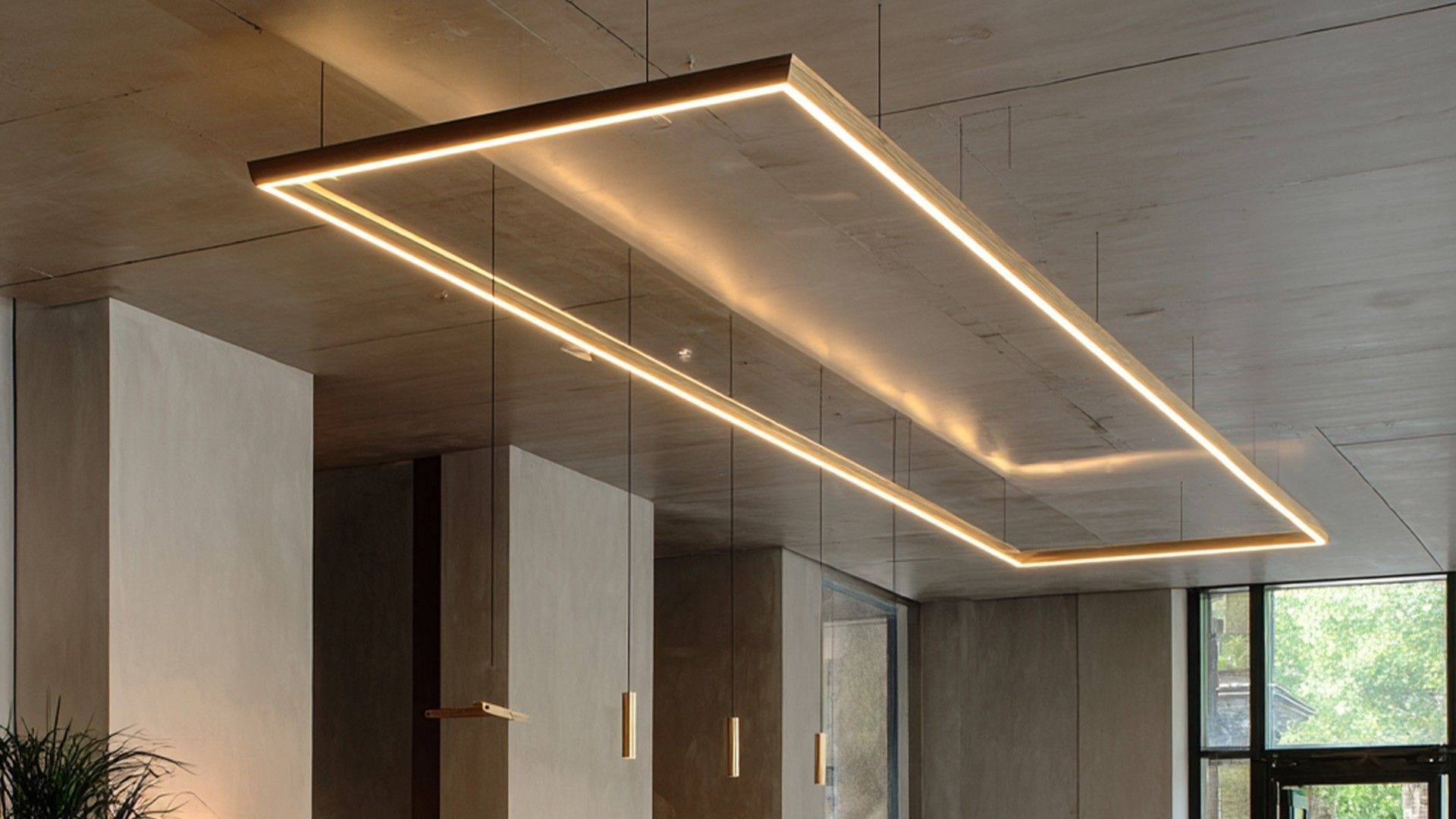 AURA is a decorative pendant light from the MOONLIGHT series, designed based on rectangular and square geometric shapes. This model offers various options, from individual lights to linear systems, tailored to different needs and spaces. The housing is made of extruded aluminum, while the light sources are high-power LED PCB boards with an efficiency of 160 lm/W. The diffuser is opal with UV protection and a light distribution angle of 120°, preventing dark spots and ensuring even illumination. AURA provides ambient lighting that integrates seamlessly into any interior while also serving as a decorative and sculptural element. Installation is straightforward with holders, cables, or surface-mounted brackets, and it is ideal for living rooms, dining areas, offices, meeting rooms, foyers, lobbies, receptions, restaurants, and cafeterias.