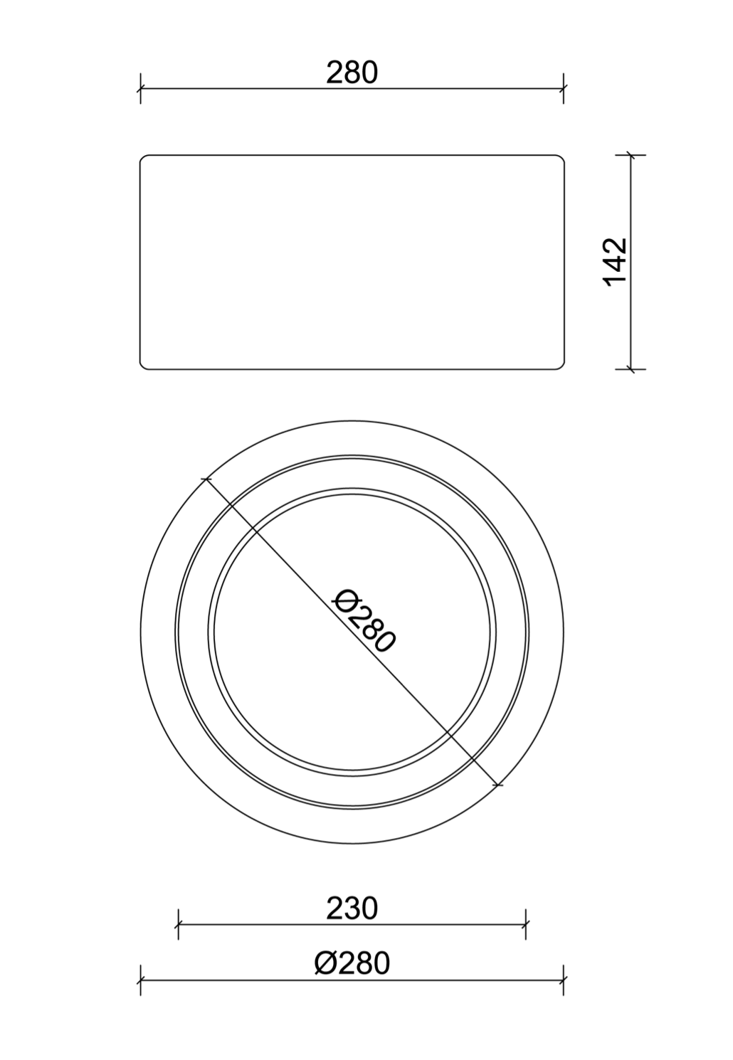 CLASSIC is a circular light fixture with a surface-mounted bracket that enhances its versatility and simplifies installation. The surface-mounted bracket measures Ø280 mm in diameter and 140 mm in height, and can be powder-coated in any color to customize the fixture's appearance.